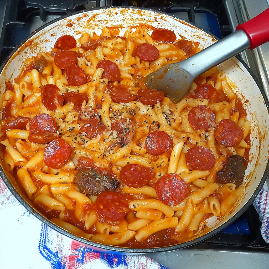 Les pâtes colorées au pepperoni sont bien plus qu’un simple plat de semaine : elles offrent une alliance irrésistible entre des spirales multicolores al dente, du pepperoni croustillant et épicé, des légumes fondants et des herbes aromatiques à l’italienne. Facile à réaliser, rapide à préparer, ce plat allie gourmandise, équilibre et plaisir visuel.