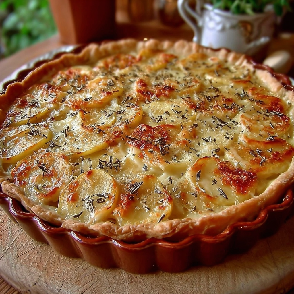 La tarte se conserve 24 heures à température ambiante, couverte d’un linge propre. Pour une conservation plus longue, placez-la au réfrigérateur et réchauffez-la doucement au four avant de servir. Évitez le micro-ondes qui risque de rendre les pommes de terre trop molles et le fromage caoutchouteux.