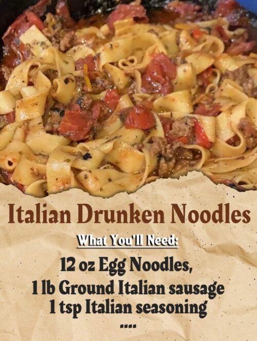 This dish of Italian Drunken Noodles is a celebration of bold flavors and comforting textures that will transport you straight to the heart of Italy. With its tantalizing aroma and hearty combination of sausage, peppers, and perfectly seasoned noodles, it’s a culinary delight that’s sure to become a family favorite.