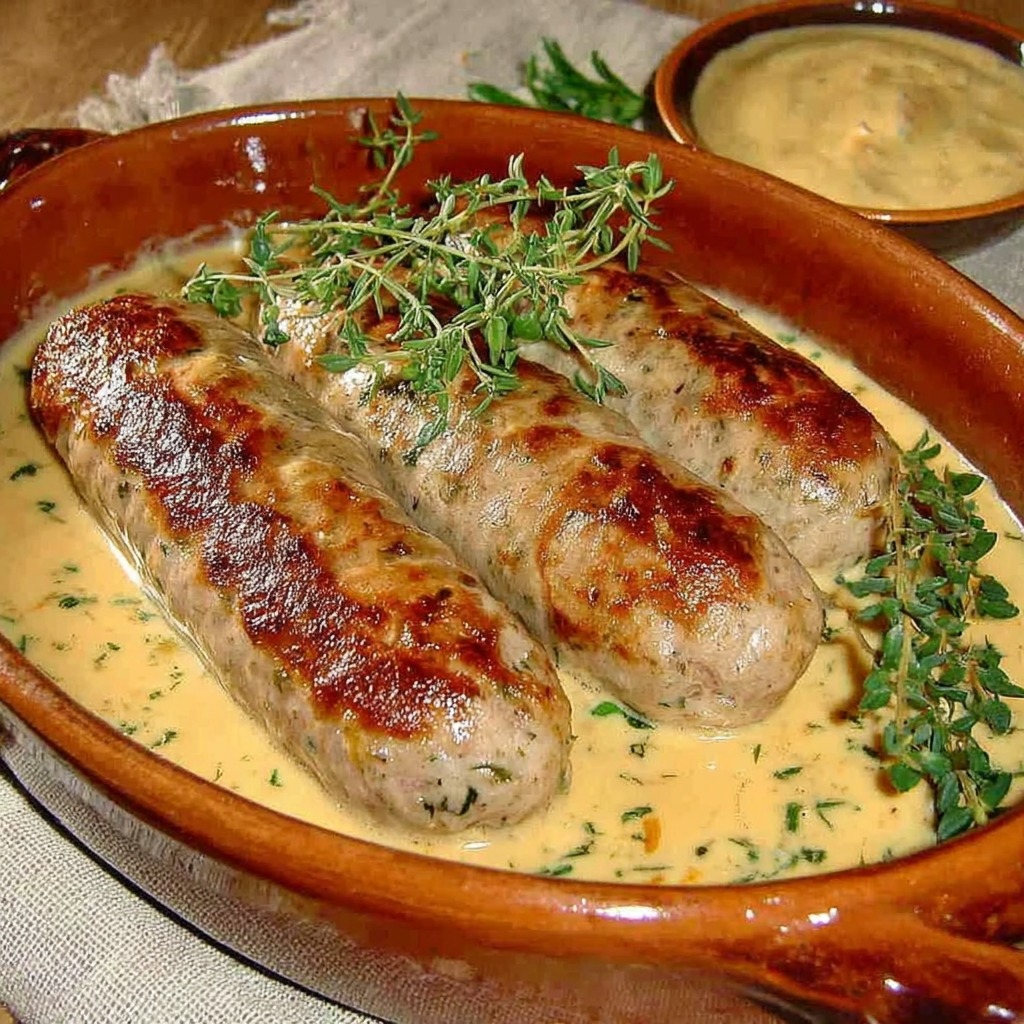 Les andouillettes à la moutarde à l’ancienne sont un plat emblématique de la cuisine française, qui allie la richesse de la charcuterie aux arômes puissants de la moutarde traditionnelle. Ce plat repose sur un équilibre entre la saveur prononcée de l’andouillette, la force aromatique des grains de moutarde et la douceur apportée par la crème, créant une sauce onctueuse et parfumée qui enveloppe chaque morceau. Il s’agit d’une préparation rustique, à la fois chaleureuse et conviviale, qui met en valeur la technique et le goût authentique des ingrédients.