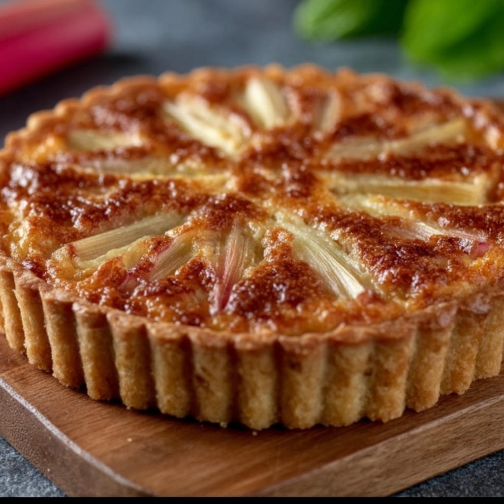 La cuisson joue un rôle déterminant dans la réussite de la tarte. Une chaleur modérée permet à l’appareil de coaguler lentement et à la rhubarbe de devenir fondante. Une cuisson trop vive risquerait de brûler la surface avant que l’intérieur ne soit correctement pris. À mesure que la tarte cuit, les parfums se diffusent et la garniture se stabilise. La surface doit atteindre une coloration légèrement dorée, signe que la crème est cuite et que la pâte a terminé de sécher. Une bonne maîtrise de la cuisson garantit un équilibre parfait entre moelleux et fermeté.