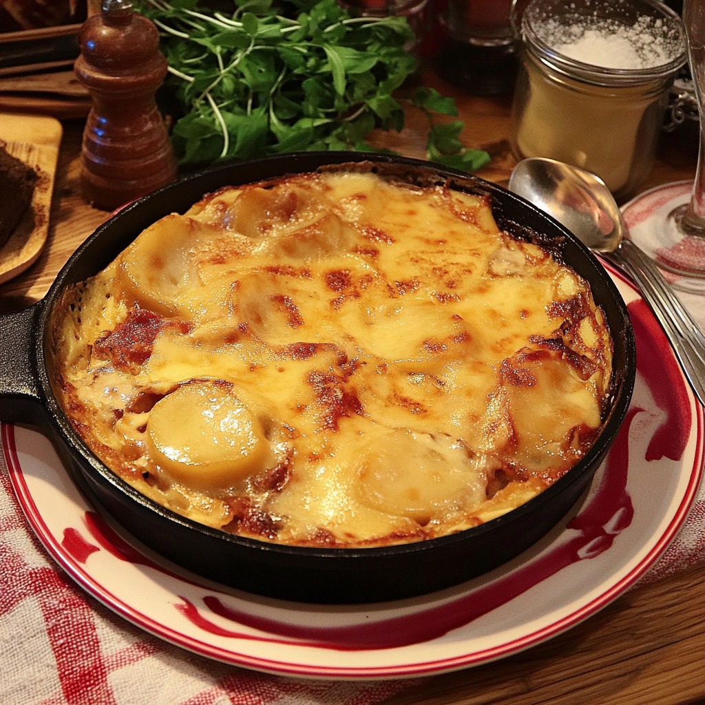 Plat emblématique des Alpes françaises, la tartiflette est à la fois rustique, riche et profondément réconfortante. Sa création est relativement récente (années 1980) mais elle s’inspire directement d’une recette paysanne plus ancienne : la pela, gratin de pommes de terre et oignons cuits au feu de bois.
