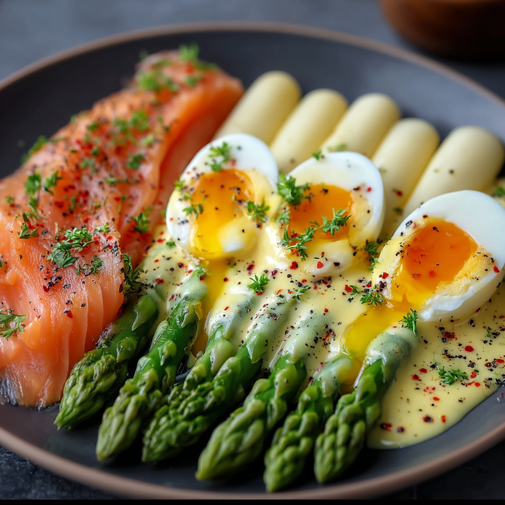 L’association asperges, saumon fumé et œuf poché est aujourd’hui très populaire dans la cuisine contemporaine car elle combine simplicité et élégance.