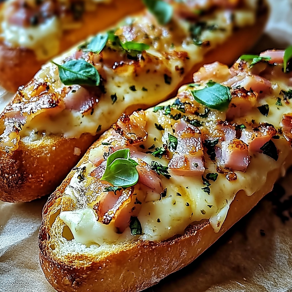 La combinaison du pain croustillant, du fromage fondant, et du jambon savoureux vous offre une explosion de saveurs à chaque bouchée. En ajoutant une touche de basilic frais, vous obtenez un plat à la fois riche et équilibré, parfait pour les repas en famille ou entre amis.