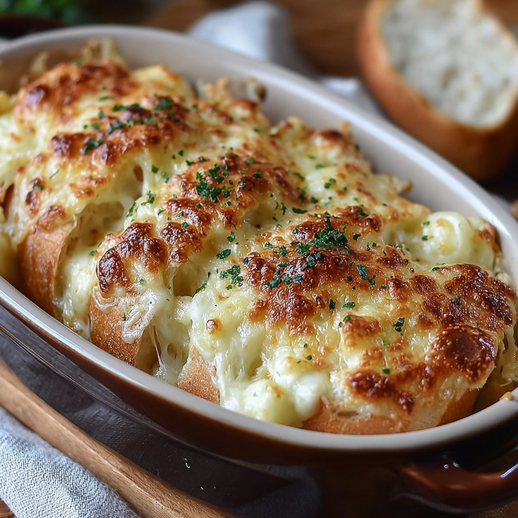 Cette baguette gratinée combine croustillant, onctuosité et richesse aromatique des quatre fromages. Simple à préparer, elle est irrésistiblement gourmande et const