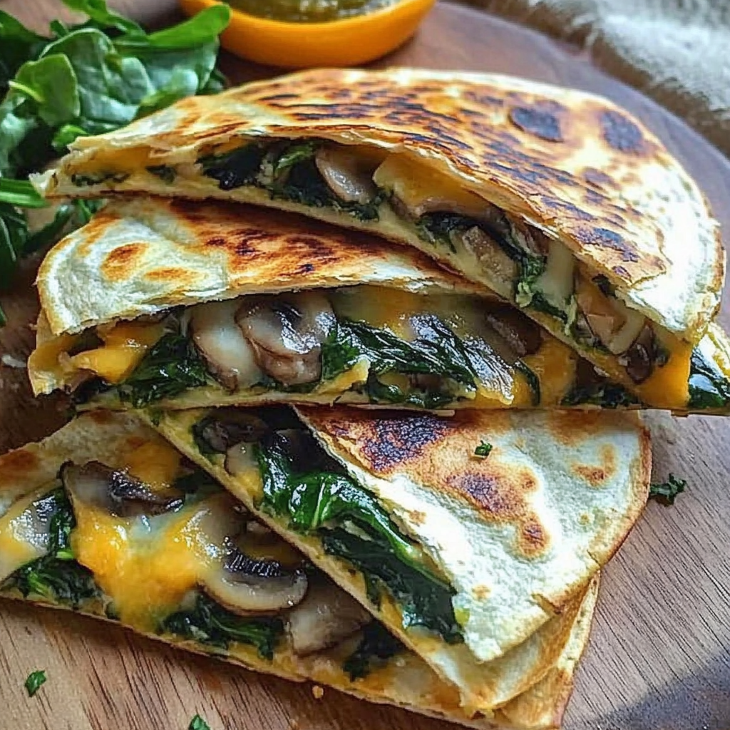 Les quesadillas sont un plat mexicain classique apprécié dans le monde entier pour leur simplicité et leur goût irrésistible. Cette version des quesadillas associe des épinards frais et des champignons tendres à une double dose de fromage fondant. Non seulement cette recette est savoureuse, mais elle est aussi idéale pour ceux qui cherchent un repas rapide, sain et nourrissant.