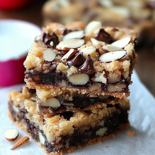 Les Barres Magiques Almond Joy sont un incontournable des desserts maison faciles à réaliser. Elles sont parfaites pour les petits plaisirs sucrés en toute occasion. Avec leur croûte de biscuit croustillante, leur garniture fondante et leur finition aux noix de coco et amandes, elles plairont à coup sûr à vos invités. Pourquoi ne pas les préparer dès aujourd’hui et faire découvrir cette recette magique à vos proches ? Profitez de chaque bouchée !