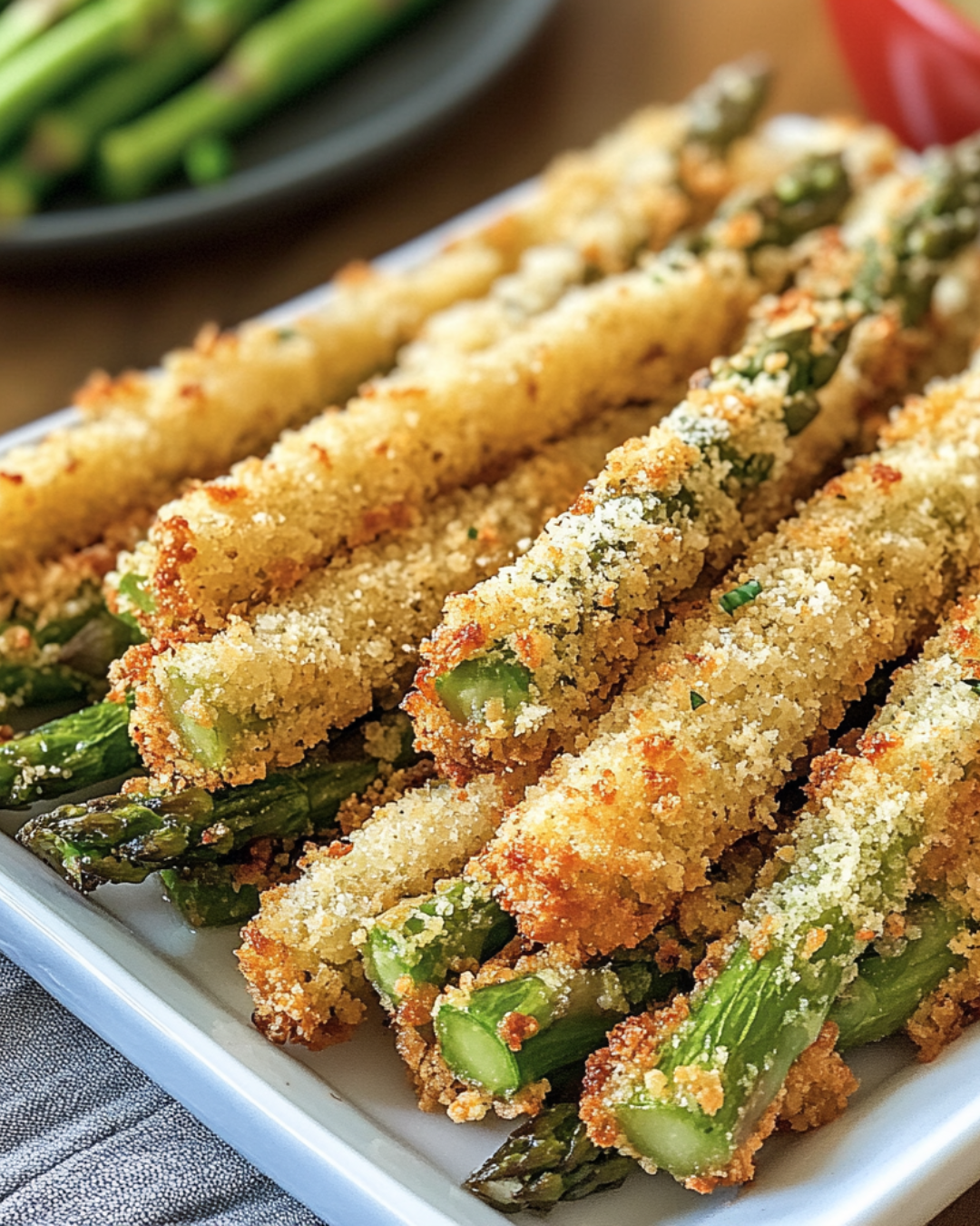 Servez les bâtonnets d’asperges chauds en apéritif ou en accompagnement. Ils sont également délicieux avec une sauce dip, comme une sauce ranch ou une sauce au yaourt.