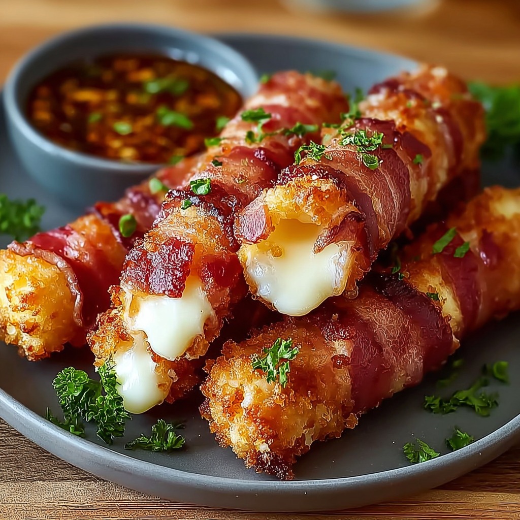 Bâtonnets de mozzarella croustillants enrobés de bacon