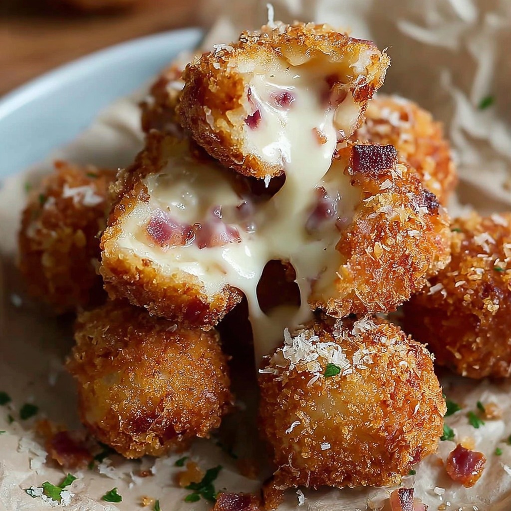 Servir chaud, accompagné de sauce russe, de moutarde douce ou d’une mayonnaise maison pour relever les saveurs. Ces beignets se dégustent immédiatement pour profiter du fromage fondant et de l’extérieur croustillant.