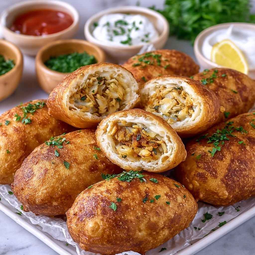 Ces beignets sont issus de la tradition des pains frits farcis que l’on retrouve dans de nombreuses cuisines du Maghreb et du Moyen-Orient. Chaque famille a sa version : au fromage, à la viande hachée, au poulet, aux légumes ou au thon. Cette version est polyvalente et peut être adaptée selon tes envies.
