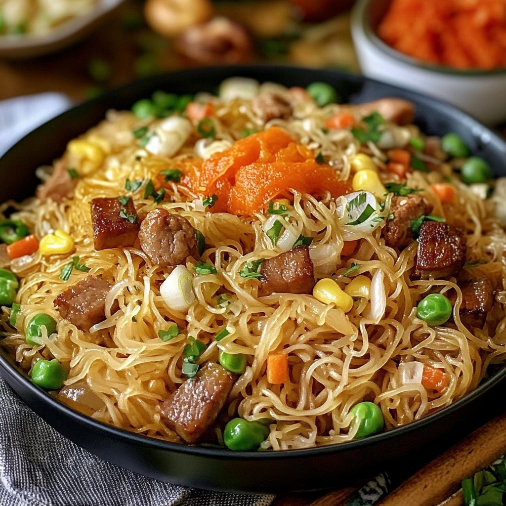 This Best Filipino Pancit recipe is a simple yet flavorful dish, perfect for any meal. It features tender pork, sautéed vegetables, and vermicelli noodles, all cooked together for a delicious, comforting meal.