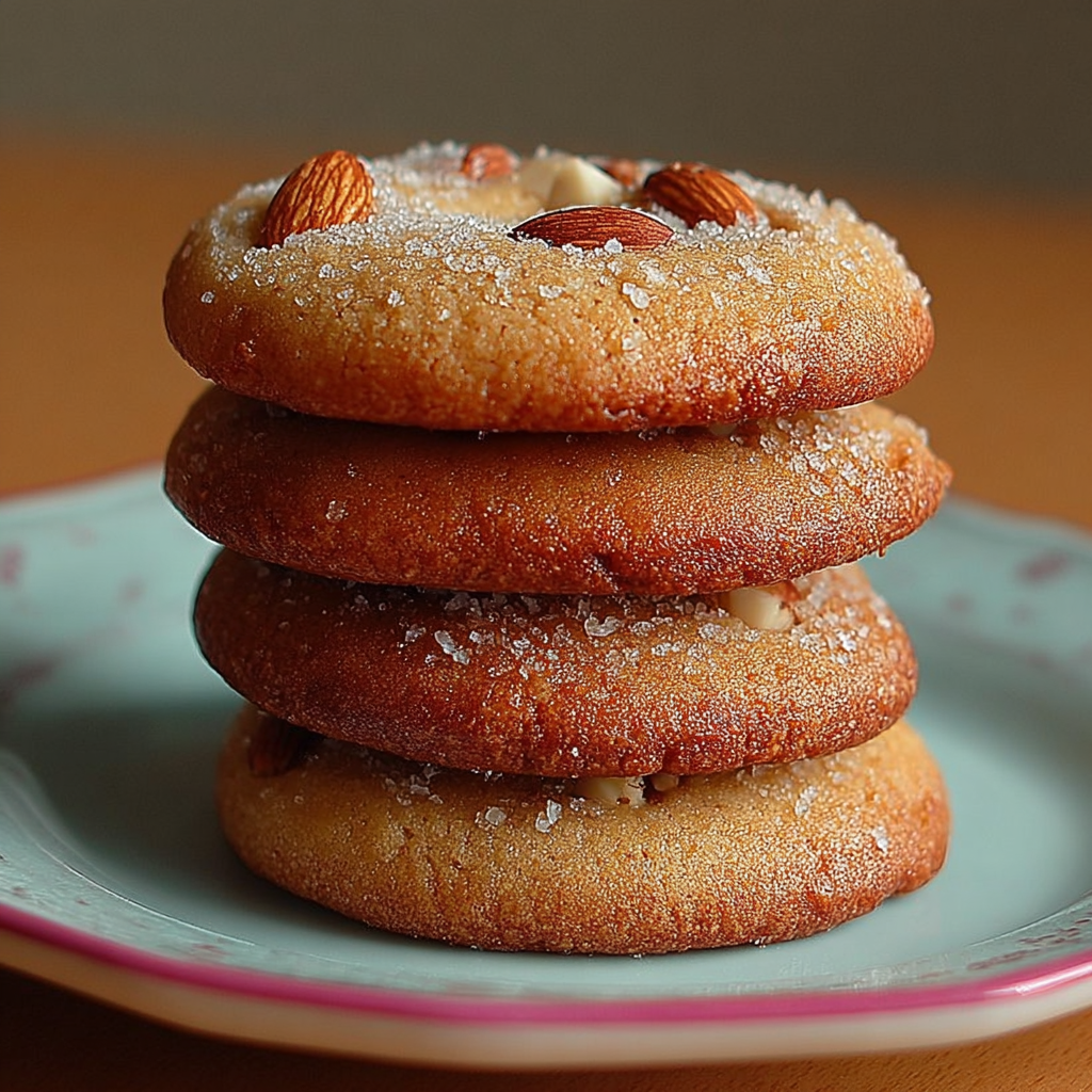 Ces petits biscuits, délicatement parfumés à l’amande, offrent une texture à la fois fondante à cœur et légèrement croustillante à l’extérieur. Leur forme en anneau leur donne un aspect élégant et artisanal, parfait pour accompagner un café, un thé ou pour être servis lors d’un goûter sain.