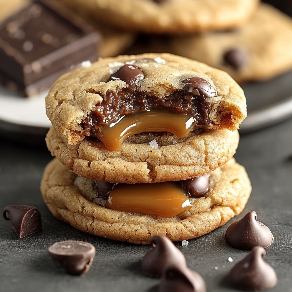Que vous les dégustiez chauds et fondants juste après la cuisson ou légèrement refroidis avec un cœur toujours fondant, ces biscuits sont irrésistibles. La douceur du chocolat se marie à merveille avec la richesse du caramel, et la touche de sel de mer vient rehausser l’ensemble pour un résultat tout simplement parfait.