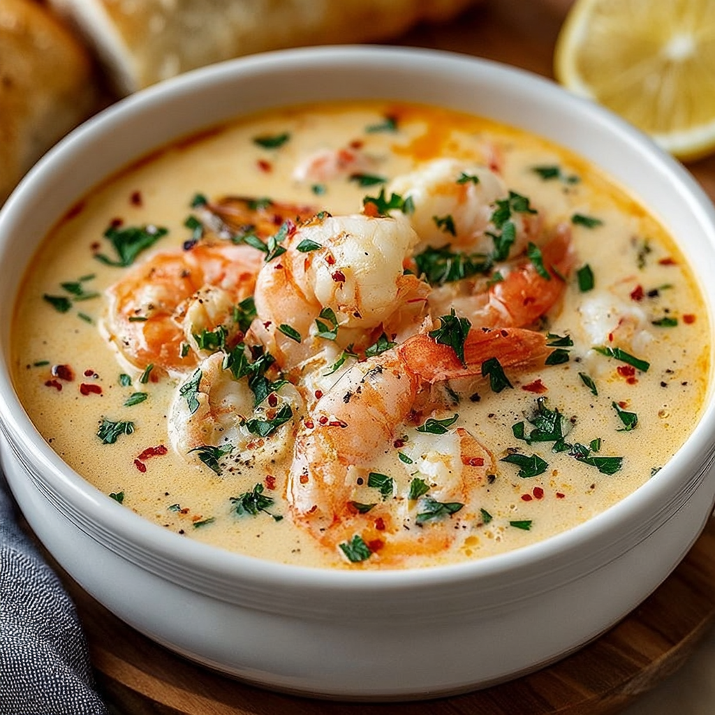 Bisque Crémeuse aux Fruits de Mer, Crabe et Crevettes