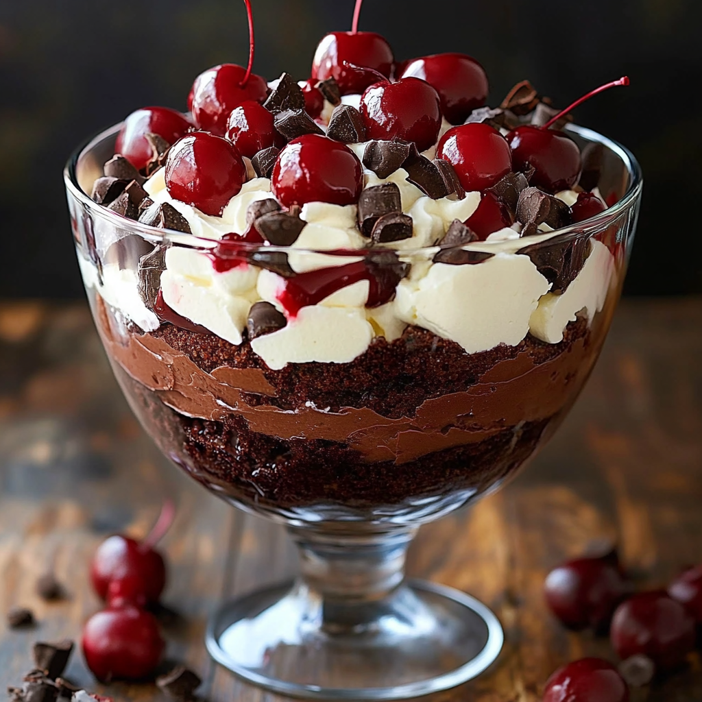 This Black Forest Trifle is a delightful dessert that combines all the flavors you love in a Black Forest cake with the added elegance of a layered trifle. Perfect for impressing guests or simply enjoying a sweet treat, this dessert is as beautiful as it is delicious. Whether served in a large trifle dish or individual cups, this dessert is sure to be a hit at your next gathering.
