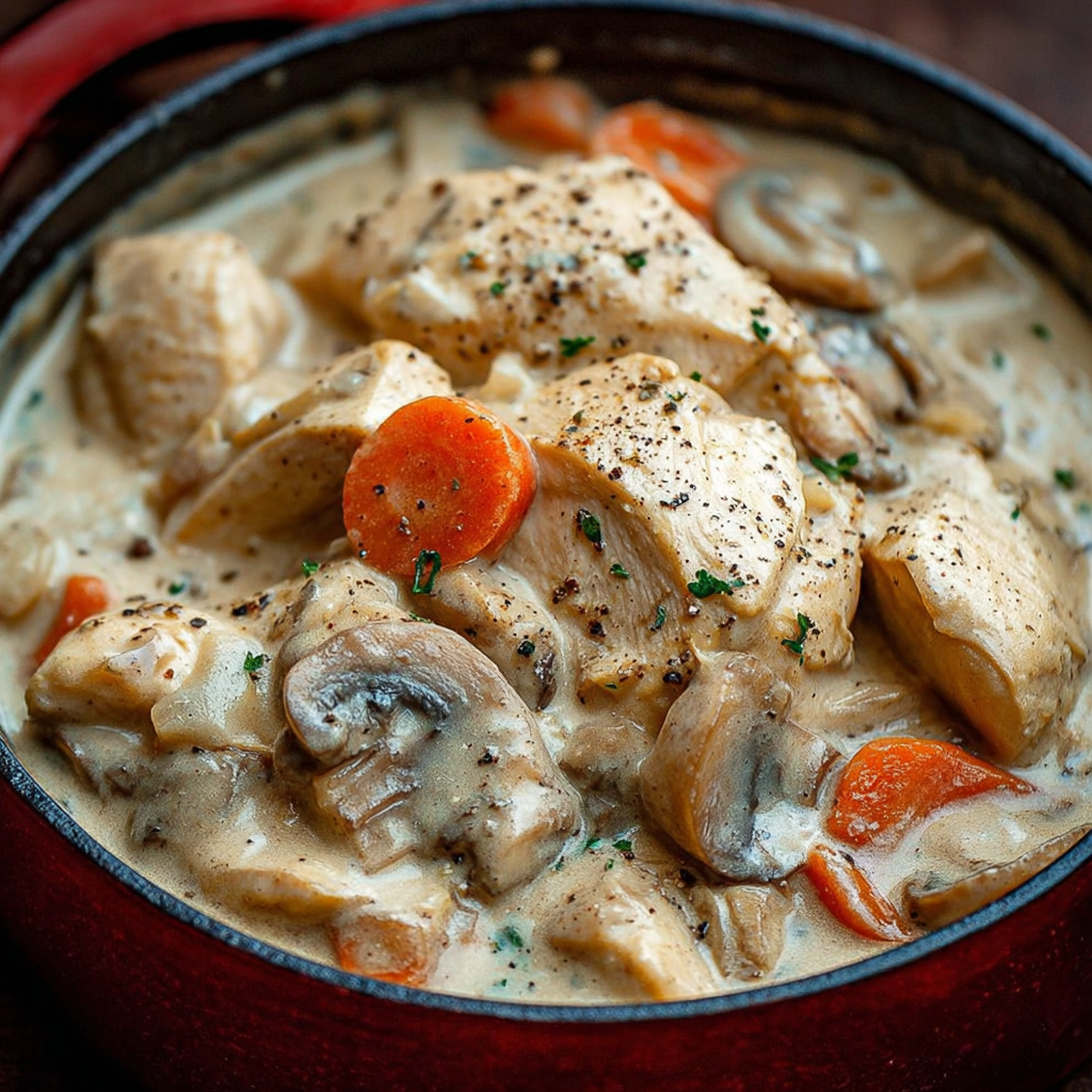 Un classique de la cuisine française, la blanquette de poulet est un plat doux, crémeux et réconfortant, parfait pour un repas familial chaleureux.
