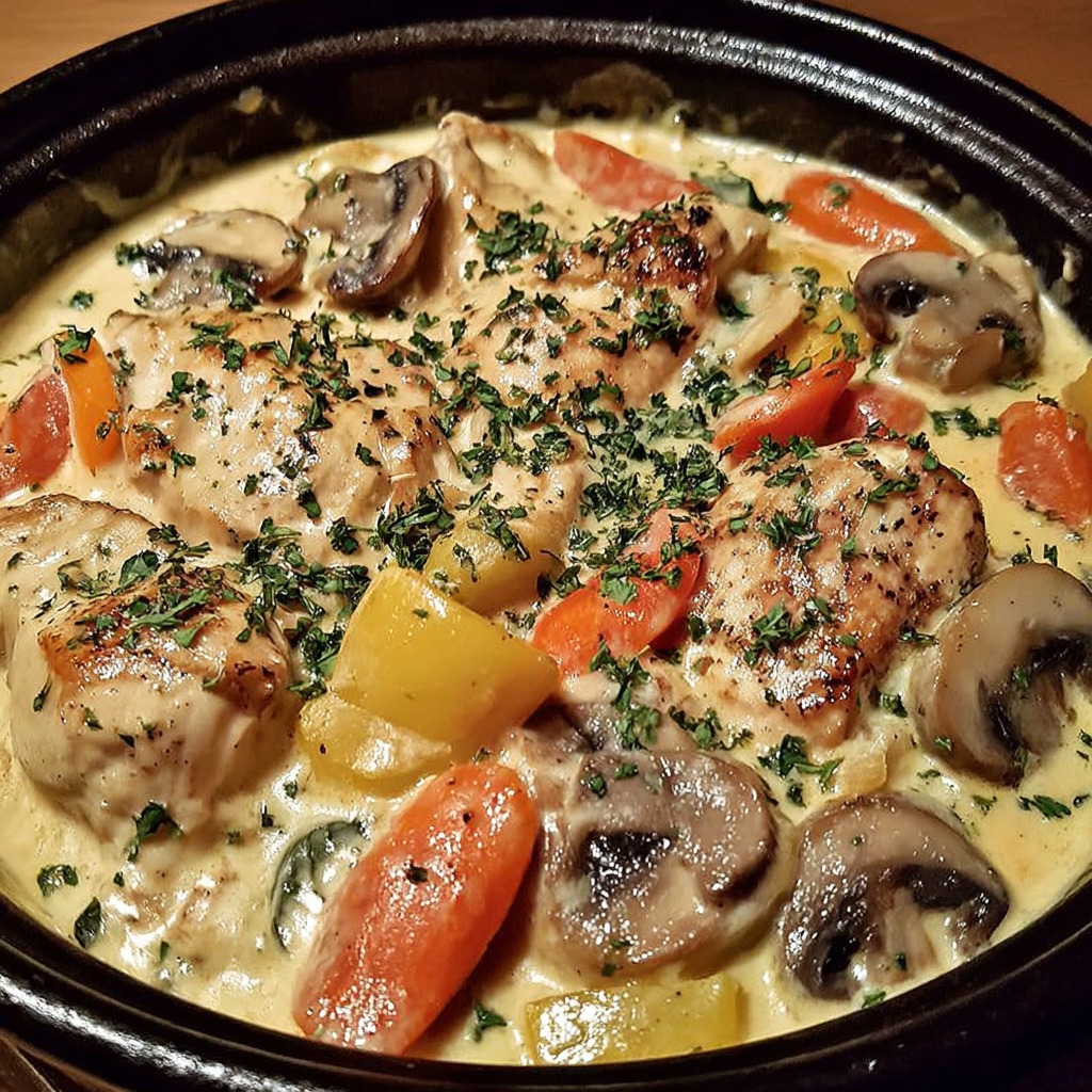 La blanquette de poulet façon grand-mère se distingue par sa texture fondante et sa sauce enveloppante. Le poulet se détache facilement, les légumes sont tendres sans être mous, et la sauce nappe parfaitement chaque ingrédient. Les saveurs sont douces, équilibrées et profondément réconfortantes.