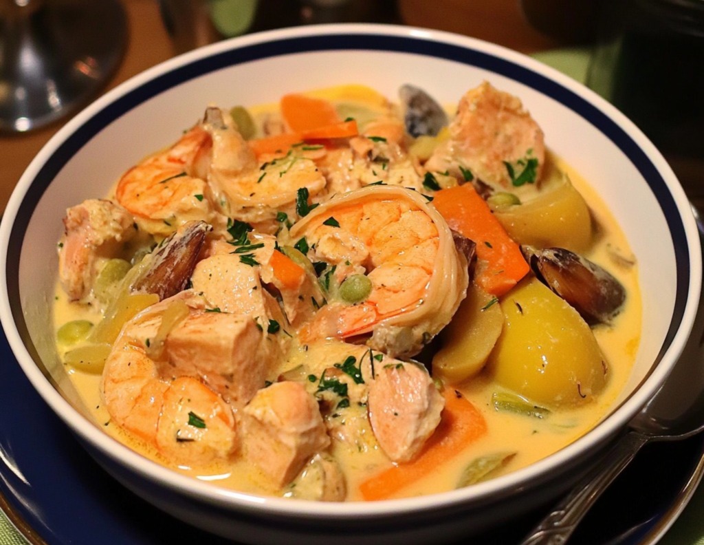 Cette recette met à l’honneur des produits simples mais nobles : légumes de saison, saumon frais, herbes, bouillon maison et crème. Le résultat ? Un plat réconfortant, équilibré, aux saveurs douces, légèrement acidulées et délicatement sucrées, prêt en moins de 45 minutes.