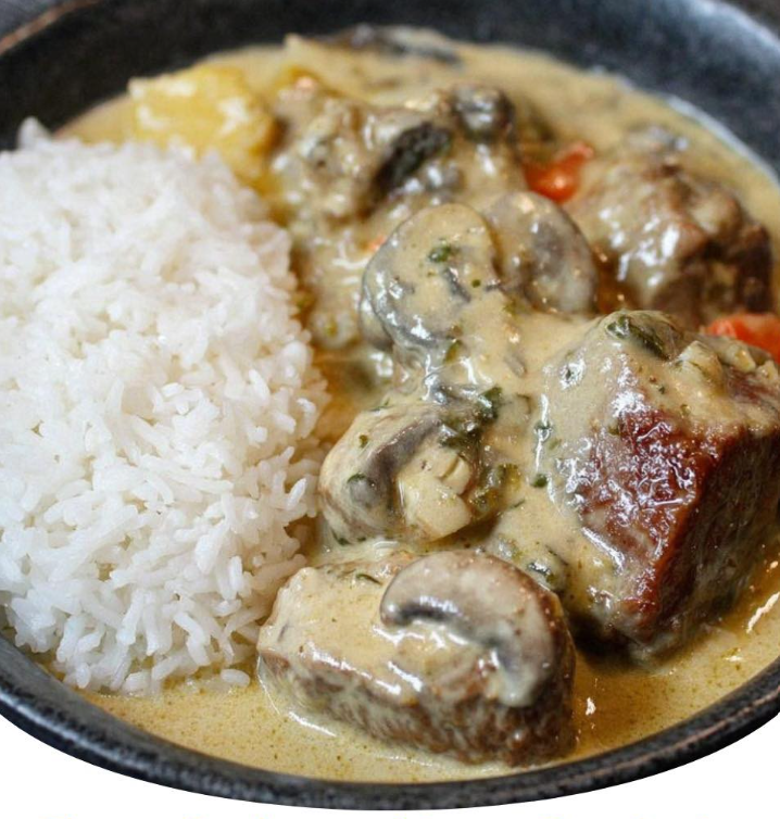 La présentation classique consiste à déposer la viande et les légumes au centre des assiettes, puis à napper généreusement de sauce. Une couleur uniforme et une texture lisse sont des signes de réussite. La simplicité visuelle du plat fait partie de son attrait. Une petite touche de persil frais ciselé peut ajouter une note herbacée discrète et une légère touche de couleur.