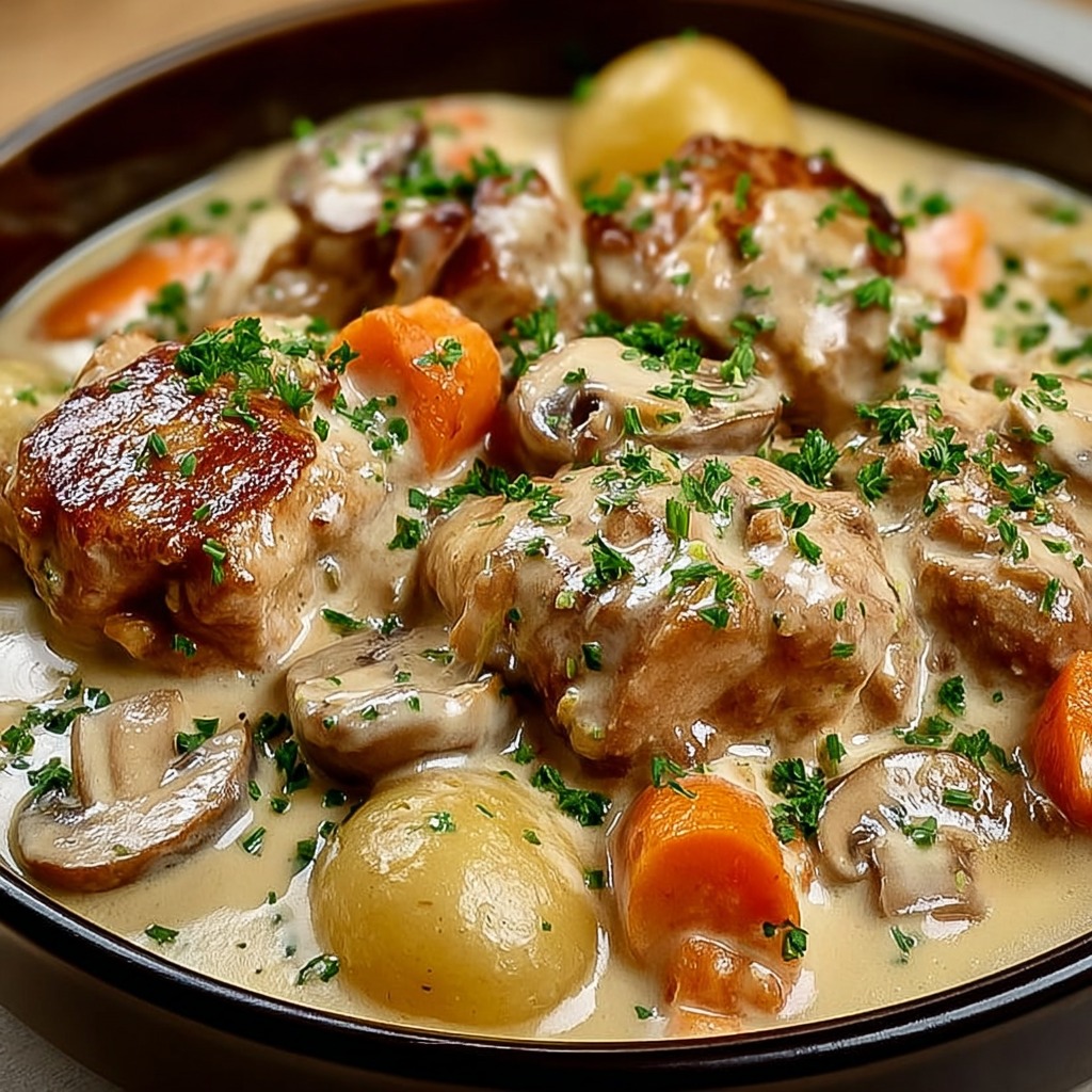 Cette blanquette de veau crémeuse traditionnelle illustre parfaitement l’équilibre entre simplicité et raffinement. Chaque étape, de la cuisson lente de la viande au nappage final de sauce enrichie à la crème et au jaune d’œuf, contribue à créer un plat généreux, parfumé et profondément réconfortant. Elle reste une valeur sûre de la cuisine familiale française, capable de séduire par son goût délicat et sa texture fondante, tout en restant accessible à tous ceux qui souhaitent préparer un rep