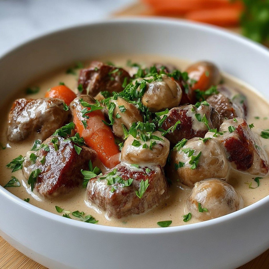 Choisir une viande de veau de qualité garantit un résultat tendre et savoureux. Ne pas négliger l’étape du blanchiment pour une sauce claire et fine. Incorporer la liaison hors du feu pour éviter que la sauce ne tourne. Ne pas surcuire après ajout des jaunes d’œufs et de la crème pour préserver la texture veloutée. Ce plat peut être préparé la veille et réchauffé doucement, ce qui en intensifie encore les arômes.