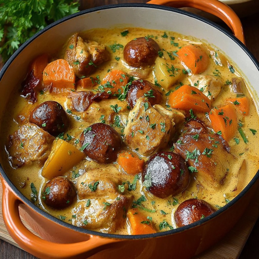 Cette recette est particulièrement appréciée en période automnale et hivernale, lorsque les légumes de saison apportent réconfort et profondeur aromatique. La sauce onctueuse, liée à la crème et aux jaunes d’œufs, enveloppe délicatement les ingrédients sans masquer leurs saveurs naturelles.