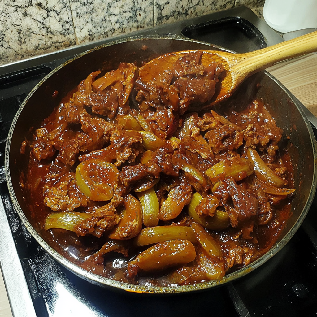- Laissez cuire encore 2 minutes pour que la viande s’imprègne bien de la sauce.