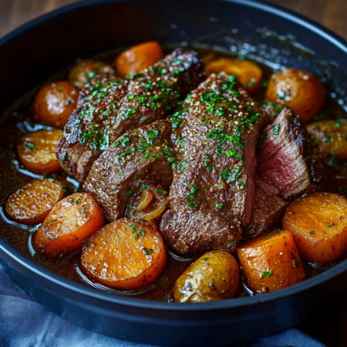 Le bœuf braisé aux carottes est un plat traditionnel qui séduit les palais les plus exigeants par sa tendreté et ses saveurs riches et parfumées. Il incarne parfaitement l’art de cuisiner lentement et avec amour. Ce plat est une invitation à la convivialité, idéal pour les repas familiaux ou entre amis. La macreuse de bœuf, cuite dans un fond de sauce savoureux à base de vin blanc et de fond de veau, se marie parfaitement avec la douceur des carottes et des pommes de terre caramélisées.