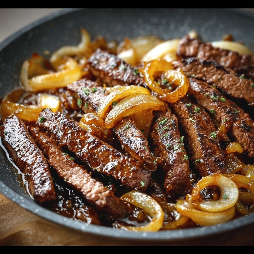 Le bœuf caramélisé aux oignons et sauce soja est un classique de la cuisine asiatique qui combine douceur, umami et texture fondante. La viande, coupée en fines lamelles, est rapidement saisie puis nappée d’une sauce sucrée-salée brillante. Les oignons, lentement caramélisés, apportent une douceur naturelle qui équilibre parfaitement la sauce soja salée.