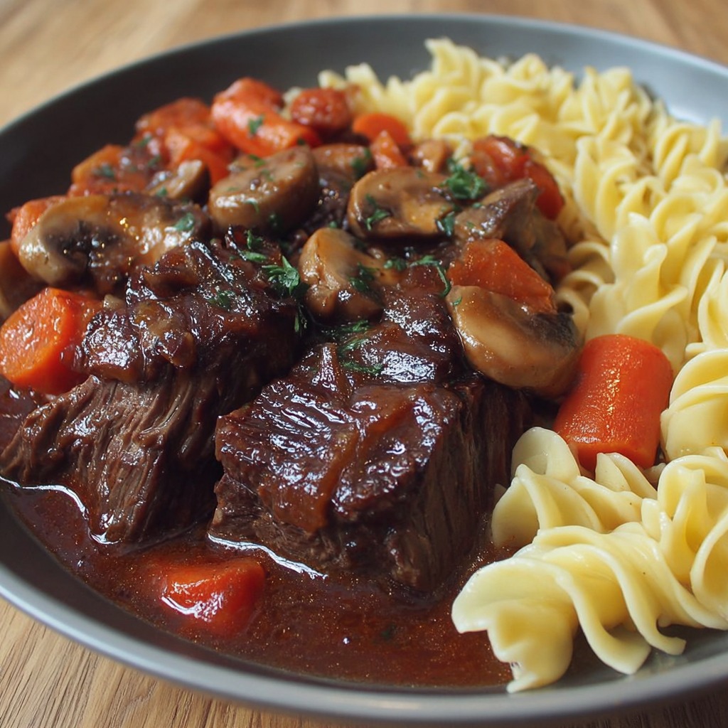 Le bœuf fondant du dimanche aux pâtes ruban et légumes mijotés est l’un de ces plats emblématiques qui évoquent immédiatement la cuisine familiale, la lenteur assumée et le plaisir de se retrouver autour d’une table généreuse. Il s’agit d’un plat de transmission, souvent préparé le week-end, lorsque le temps permet de laisser mijoter longuement les ingrédients afin d’en extraire toute la richesse aromatique. Cette recette incarne une cuisine sincère, nourrissante et profondément ancrée dans les traditions culinaires européennes.