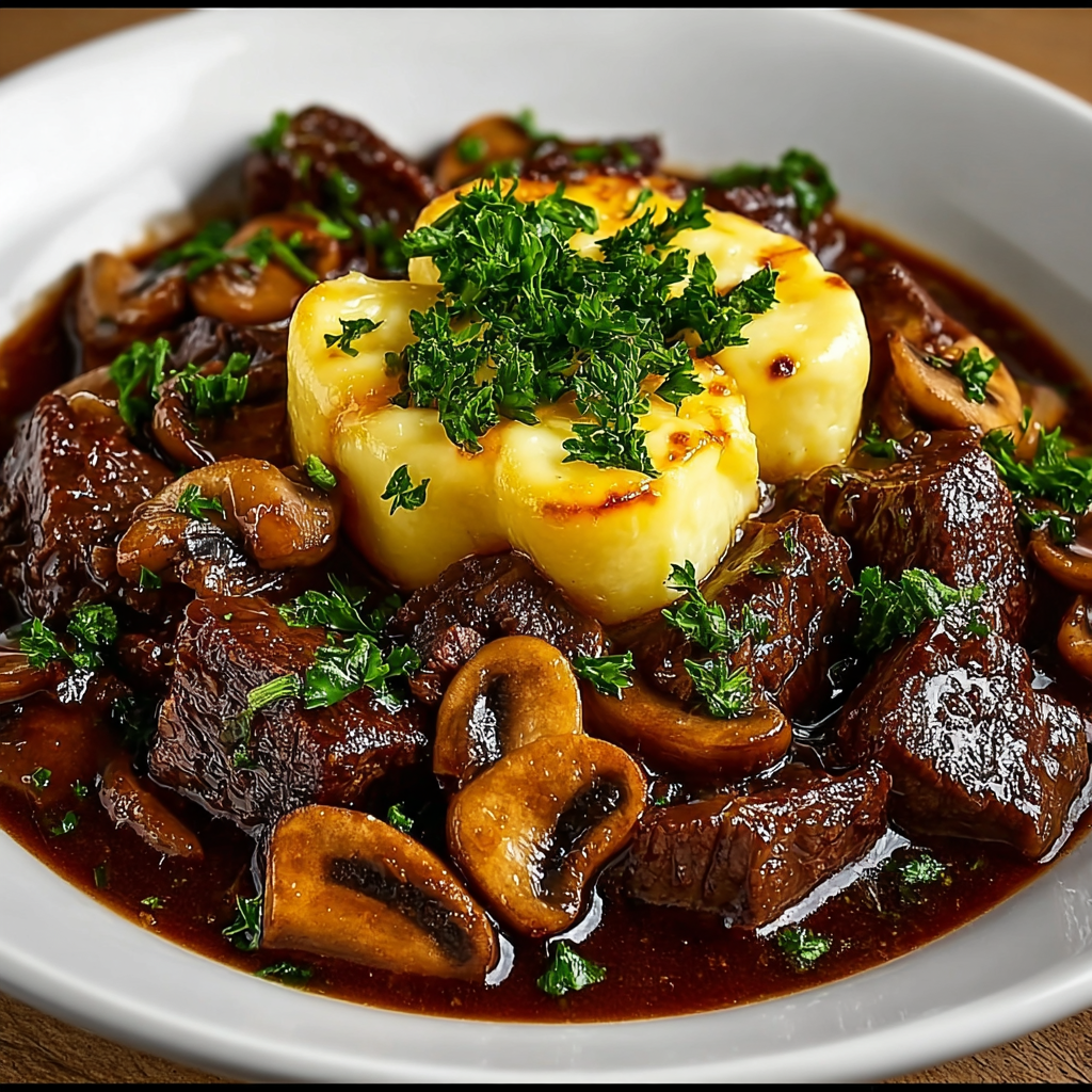 Un mijoté de bœuf tendre aux champignons, sublimé par du fromage fondant. Une recette familiale parfaite pour les soirées d’hiver.