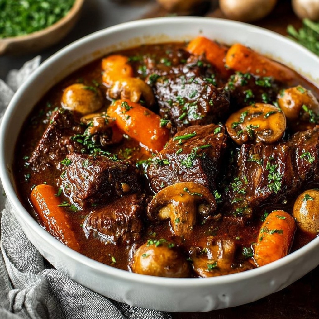 Le bœuf mijoté aux carottes et champignons occupe une place centrale dans la cuisine familiale. Il symbolise la cuisine du temps long, du partage et de la générosité. Facile à préparer à l’avance, il convient aussi bien aux repas quotidiens qu’aux occasions conviviales.