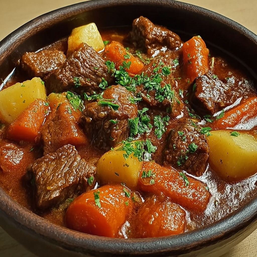 Le bœuf mijoté aux légumes à la française allie tendreté, richesse de saveur et textures variées. Facile à préparer, il constitue un plat familial, réconfortant et élégant, capable de séduire tous les convives. La cuisson lente transforme les ingrédients simples en un repas savoureux et généreux.