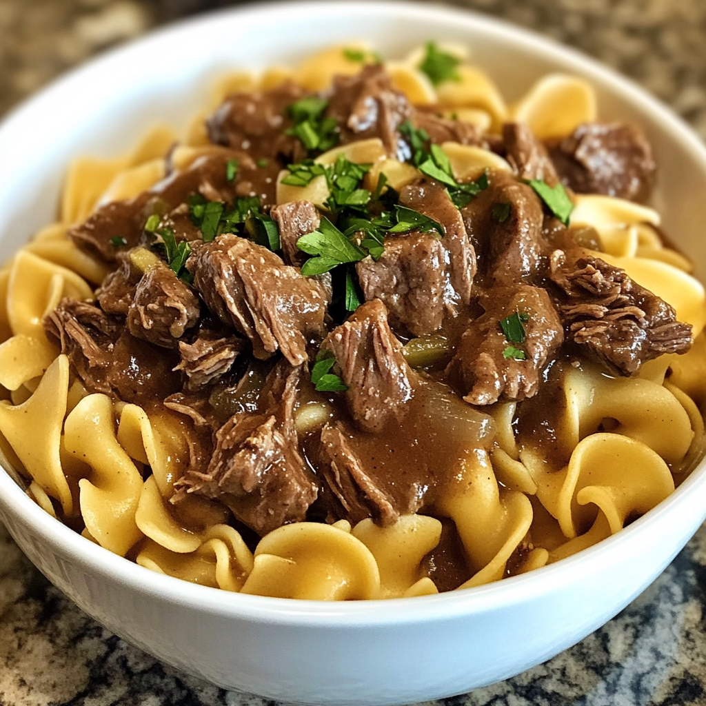 Un plat réconfortant et savoureux, où des morceaux de bœuf tendre mijotent lentement, accompagnés de nouilles moelleuses.