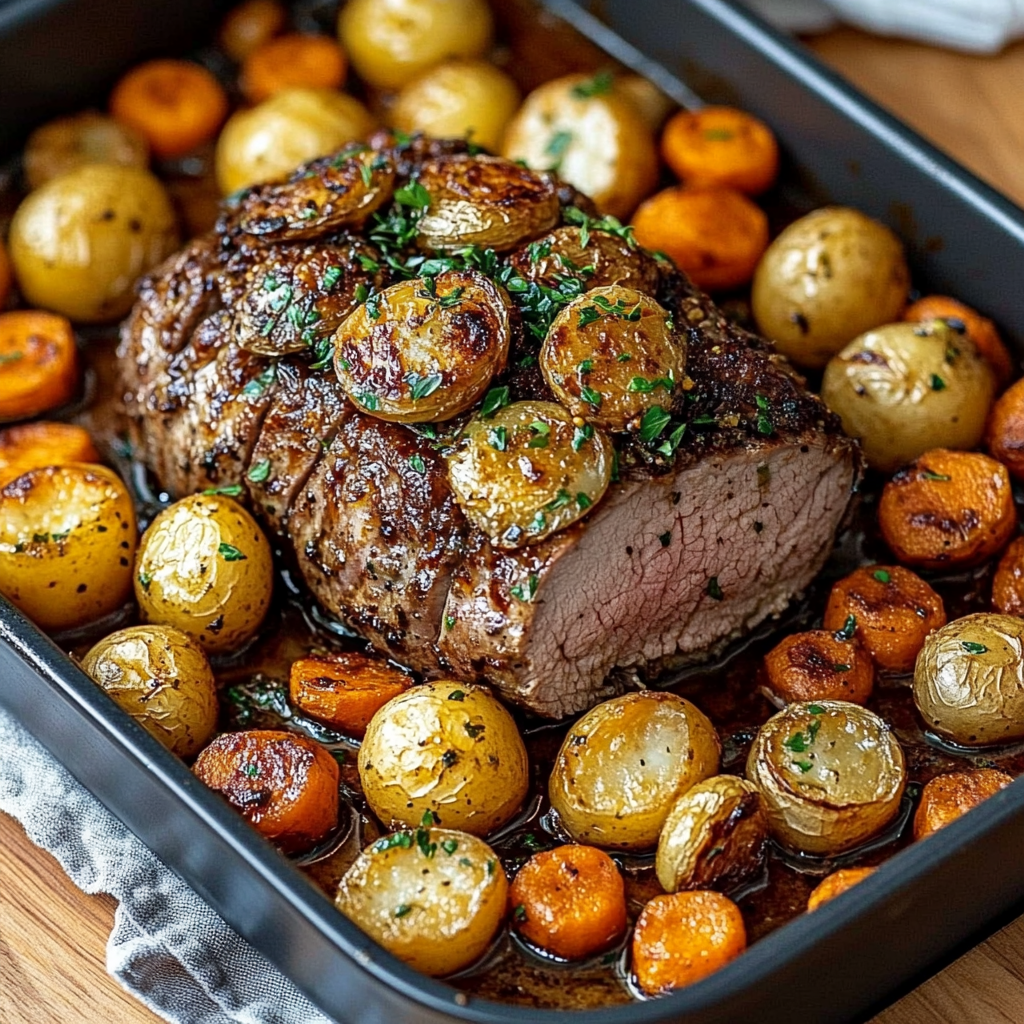 Bœuf Rôti au Four avec Pommes de Terre, Carottes et Oignons : Un Plat Réconfortant et Gourmand