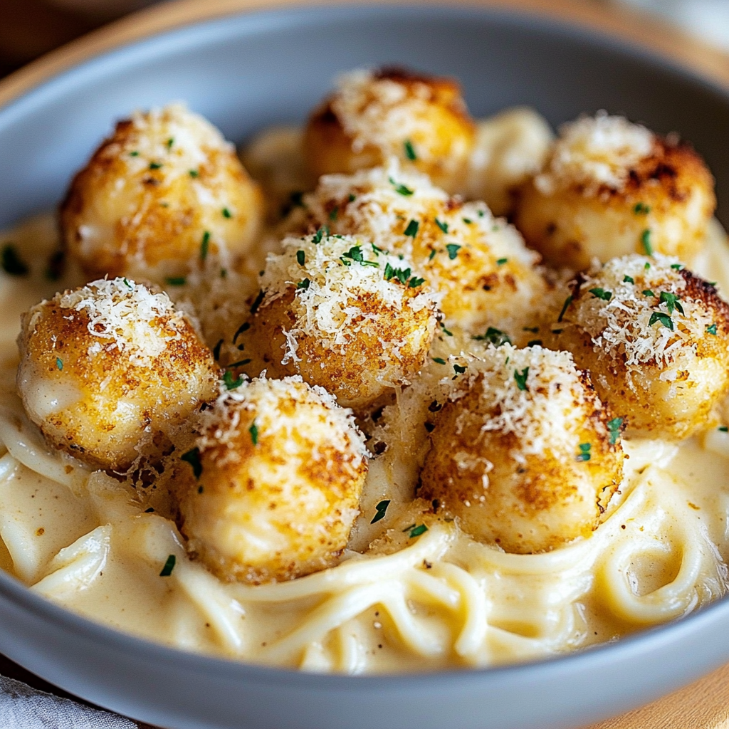 Vous rêvez d’un plat qui allie croquant, fondant et crémeux, tout en étant prêt rapidement et sans complexité ? Ne cherchez plus : ces bouchées de poulet à l’ail doré, servies sur un lit de pâtes nappées d’une sauce au parmesan ultra onctueuse, sont la solution idéale pour un dîner en amoureux ou un repas familial élégant.