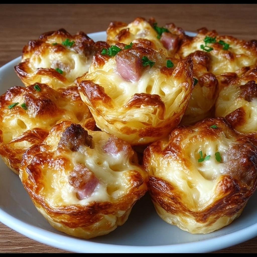 Cette recette s’inspire des célèbres cakes salés français, mais sous forme de petites bouchées individuelles. Ce format pratique permet de les servir facilement et de les déguster sans couverts. Grâce à l’association des lardons fumés et du comté, ces bouchées possèdent un goût riche et gourmand qui plaît à presque tout le monde.