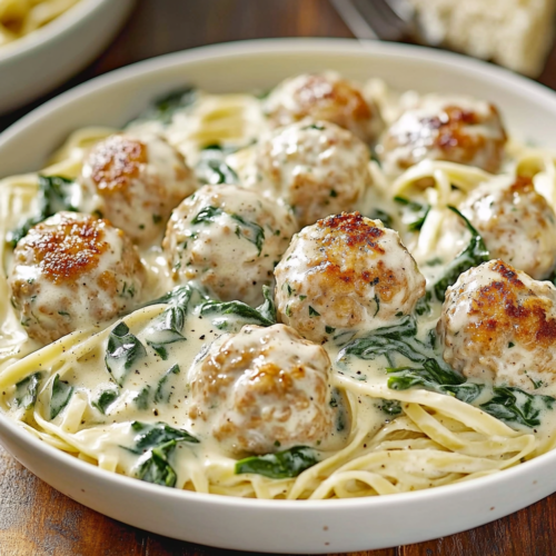 Les boulettes de poulet à la ricotta avec une sauce Alfredo aux épinards constituent un plat réconfortant, idéal pour un dîner familial ou une soirée entre amis. Ce mélange parfait de textures et de saveurs vous transportera en Italie, avec la douceur crémeuse de la ricotta et l’onctuosité de la sauce Alfredo. Facile à préparer, cette recette allie le goût riche du poulet avec des épinards frais, le tout enrobé d’une sauce savoureuse qui séduira petits et grands.