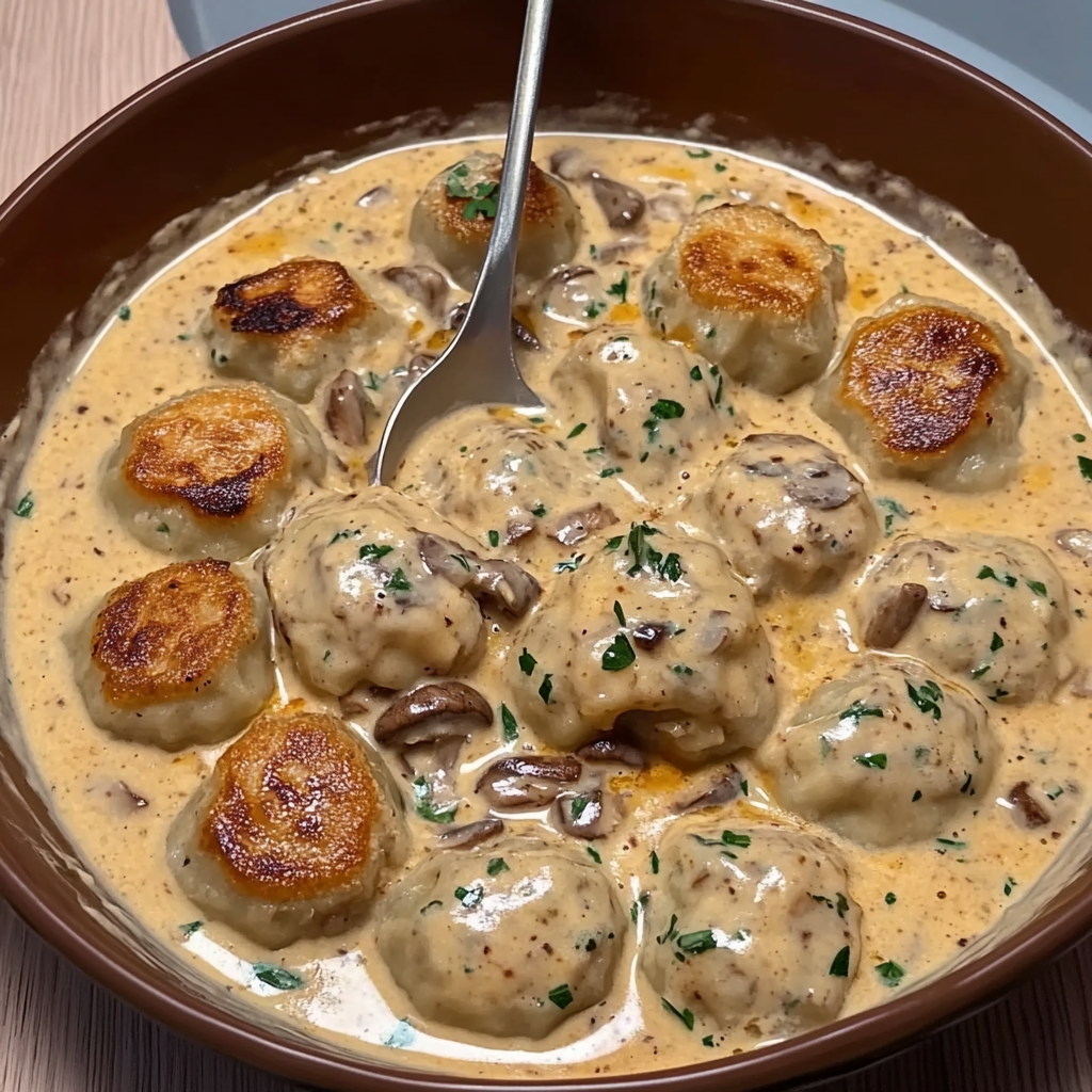 Un plat réconfortant où des boulettes de poulet tendres sont baignées dans une sauce onctueuse aux champignons. Parfait pour un repas en famille ou entre amis, ce plat combine protéines maigres et douceur d’une sauce riche.