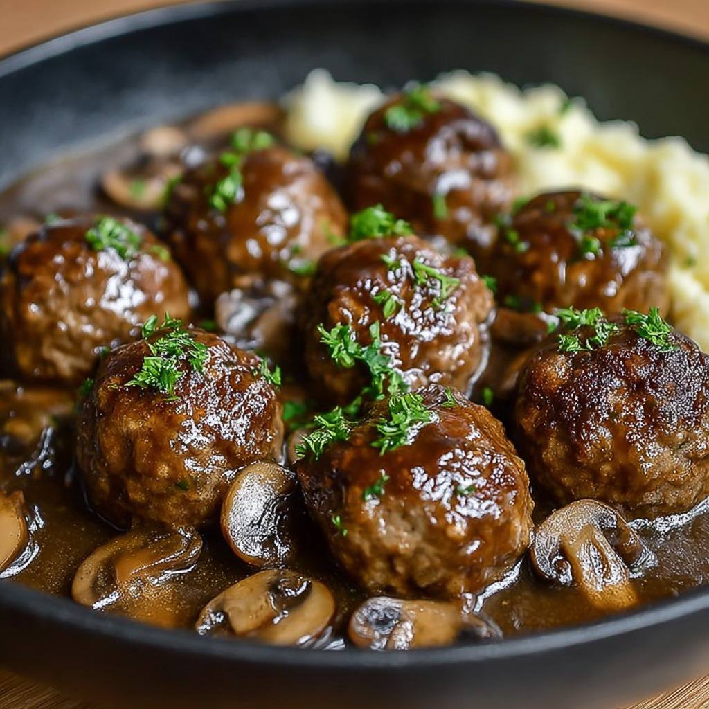 Les boulettes de steak Salisbury à la sauce aux champignons sont un plat classique de la cuisine américaine, apprécié pour leur richesse, leur onctuosité et leur goût réconfortant. Cette recette combine des boulettes de viande hachée savoureuses, préparées avec soin pour obtenir une texture tendre et juteuse, et une sauce aux champignons crémeuse et parfumée qui nappe généreusement chaque bouchée. Servies avec des pommes de terre, du riz ou des pâtes, ces boulettes constituent un repas complet et chaleureux, parfait pour un dîner familial ou un repas convivial. La réussite de ce plat repose sur la qualité de la viande, le choix des champignons et la cuisson précise des boulettes afin qu’elles restent tendres et imprégnées de saveurs.