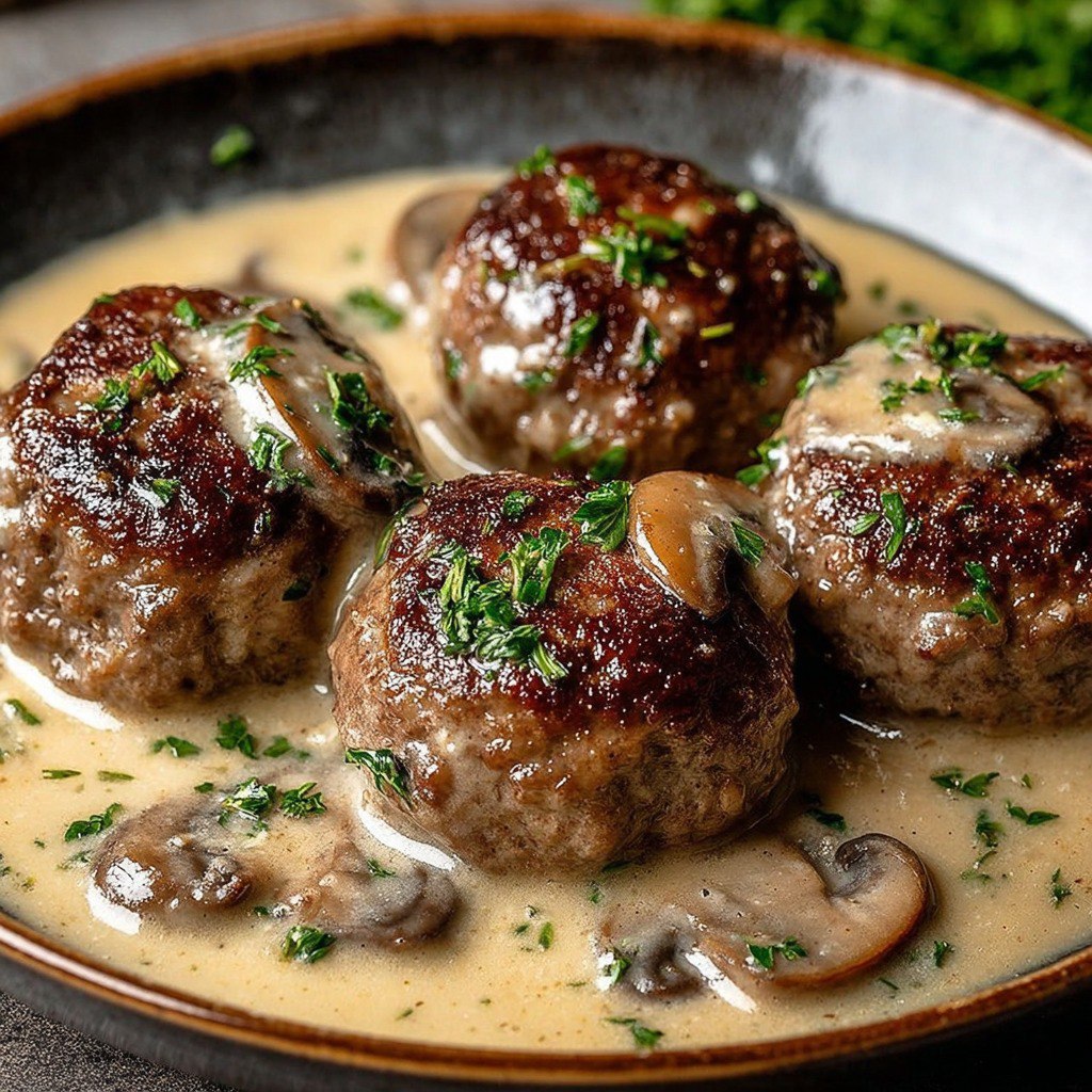 boulettes de viande de bœuf dans une sauce crémeuse aux champignons