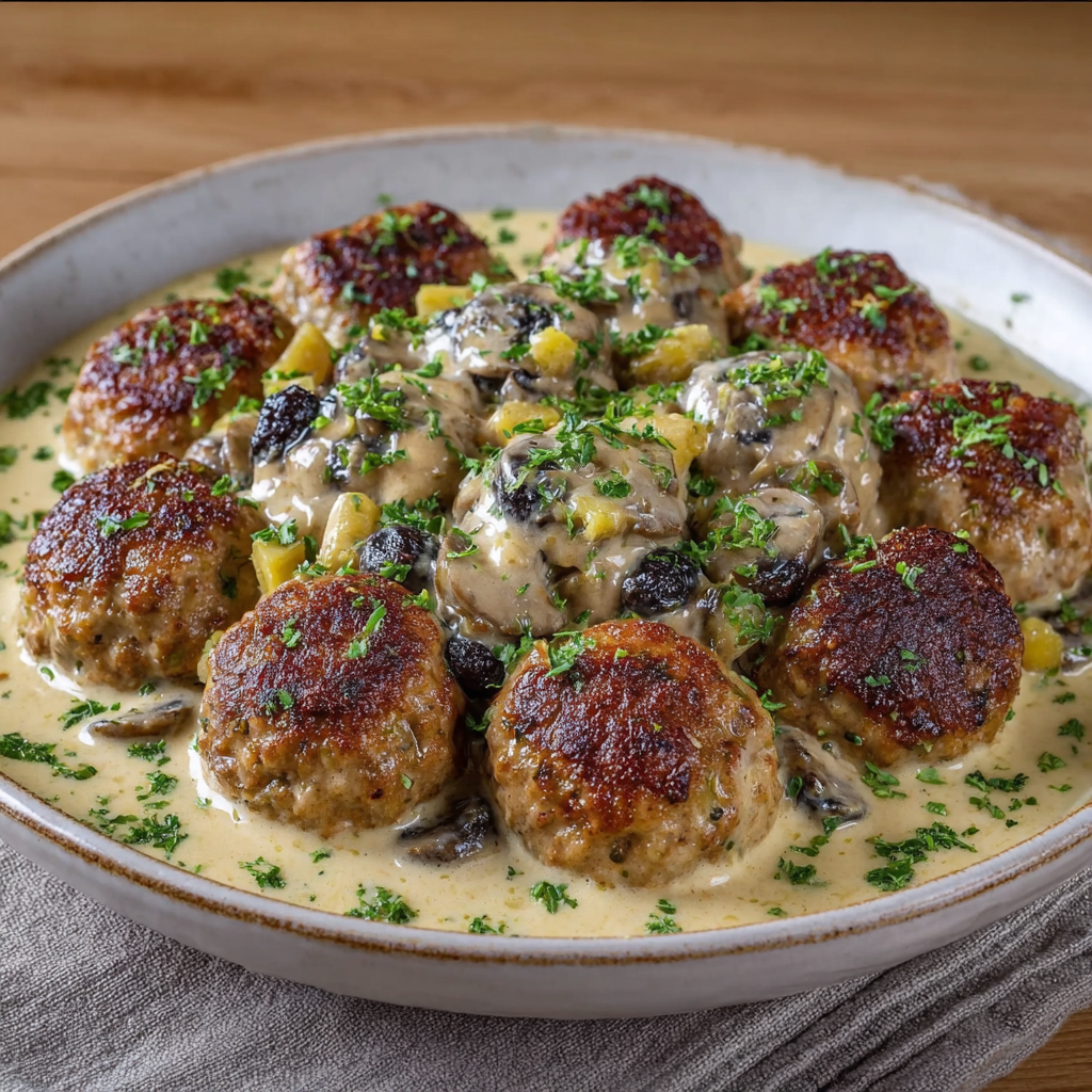 Boulettes de Viande Maison avec Sauce Crémeuse aux Champignons