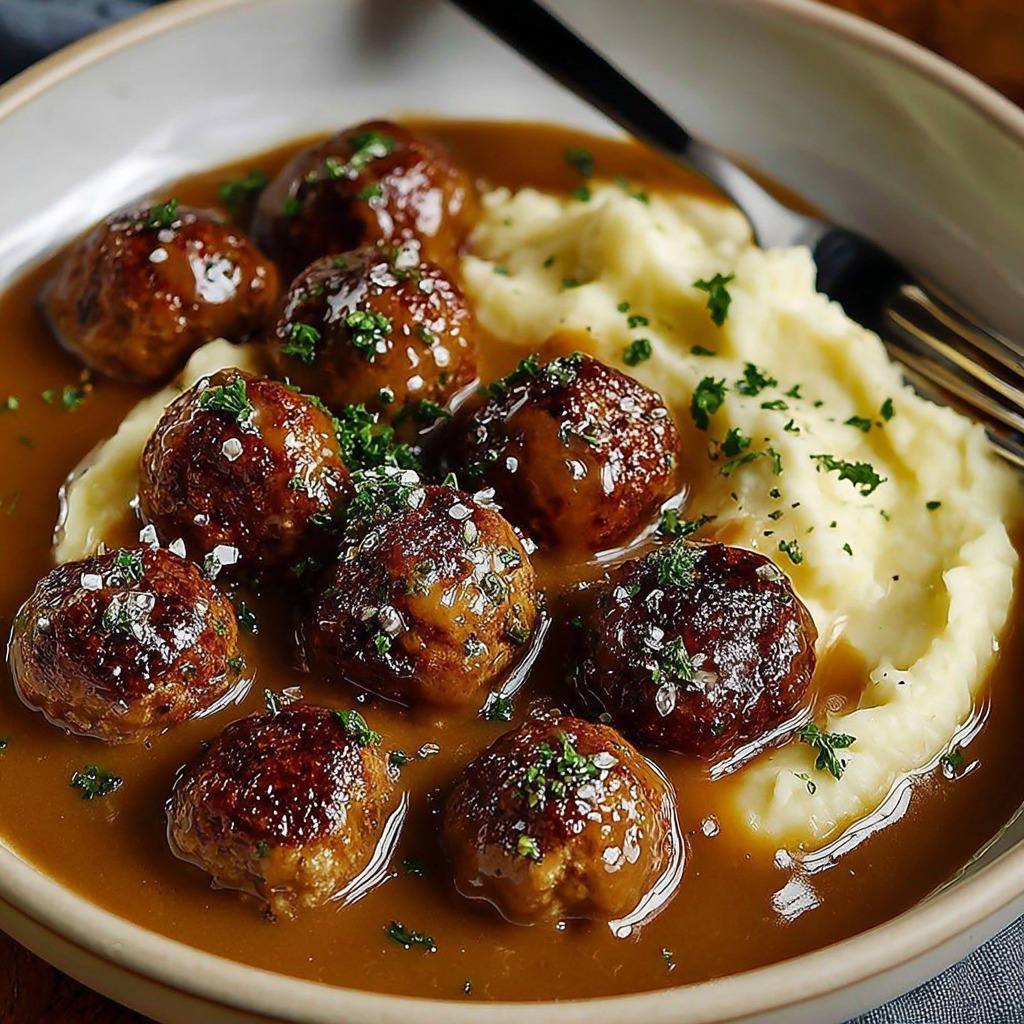 Boulettes sauce brune purée est donc un plat complet, chaleureux et équilibré. Il combine tendreté, crémeux et parfum aromatique pour offrir une expérience culinaire conviviale et mémorable. Il illustre comment des ingrédients simples et accessibles peuvent se transformer en un repas réconfortant, capable de rassembler famille et amis autour d’une table généreuse et savoureuse.