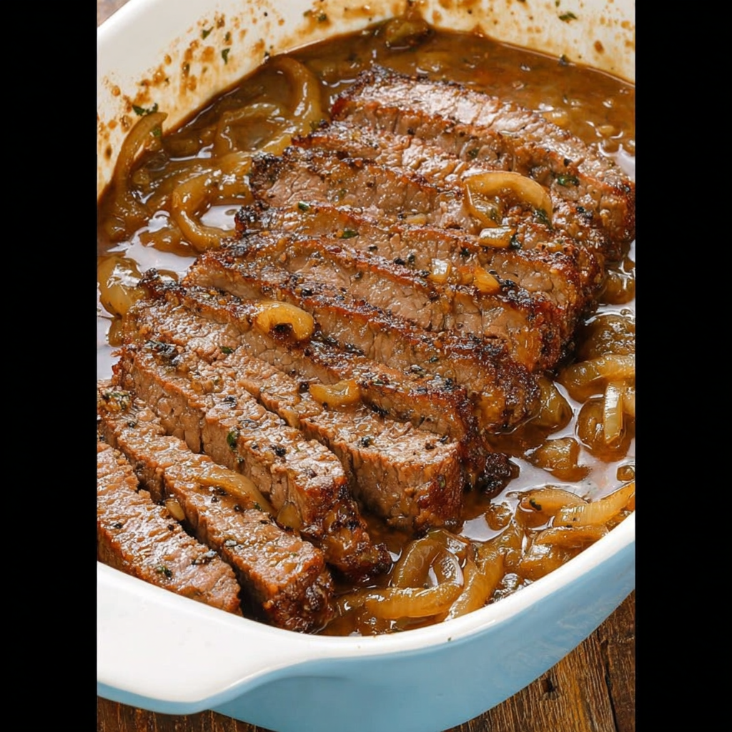 Le brisket à la française au four avec 3 ingrédients est une recette simple, rapide et incroyablement savoureuse. En combinant cuisson lente, repos et quelques ingrédients clés, vous obtenez un plat digne d’un restaurant, mais préparé en toute simplicité à la maison. Que ce soit pour un repas familial, un dîner entre amis ou un événement spécial, cette recette impressionnera par sa tendreté, sa saveur et sa facilité de réalisation.