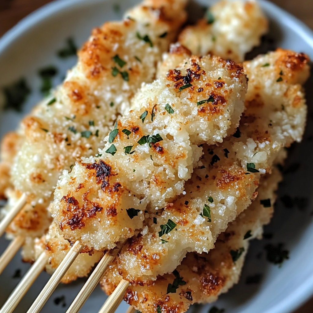 Ces brochettes de poulet à l’ail et parmesan, fondantes et juteuses, deviendront sûrement un incontournable de votre cuisine. Faciles à préparer et pleines de saveur, elles s’adaptent à toutes les occasions et plairont aux petits comme aux grands.