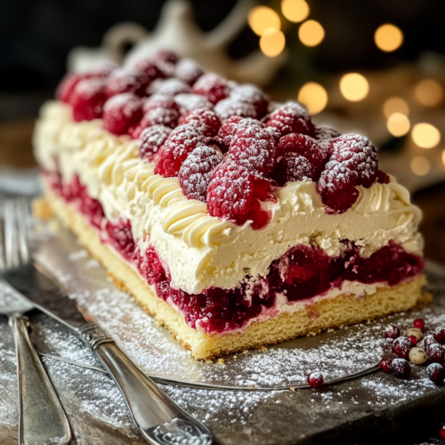 La Bûche Mascarpone & Framboise est non seulement une recette délicieuse et raffinée, mais elle est également très versatile. Vous pouvez l’adapter pour convenir à vos préférences gustatives, par exemple en remplaçant les framboises par d’autres fruits rouges comme les fraises ou les myrtilles. Ce dessert s’inscrit parfaitement dans l’esprit des repas de fêtes, apportant une touche de fraîcheur et de légèreté après un repas copieux. De plus, sa préparation simple et rapide en fait une excellente option pour ceux qui recherchent une alternative rapide mais spectaculaire à la traditionnelle bûche de Noël.