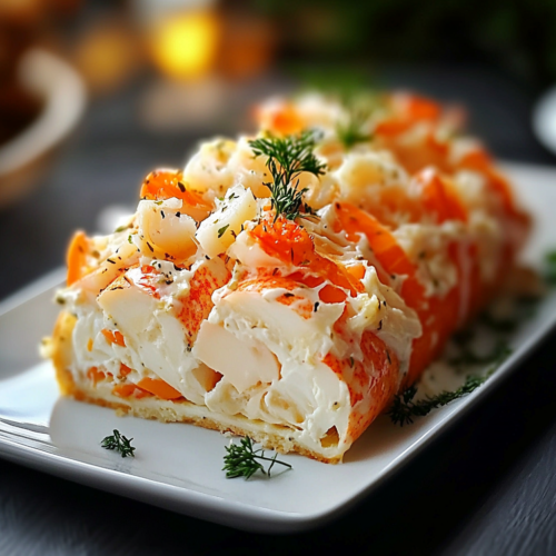 Une bûche salée délicieuse, légère et pleine de fraîcheur, parfaite pour les repas festifs et conviviaux. Cette bûche salée combine les saveurs maritimes du crabe, du saumon fumé et des crevettes, enveloppées dans une crème onctueuse et légère. Idéale pour surprendre vos invités lors des fêtes de fin d’année ou pour tout autre repas spécial. La préparation est simple, rapide et le résultat est à la fois raffiné et savoureux.