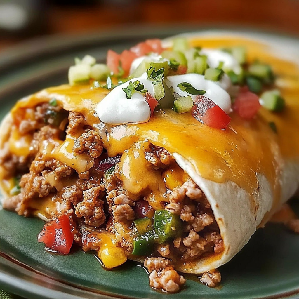 Un régal ultime avec une viande savoureuse, des légumes frais, et une sauce enchilada irrésistible!