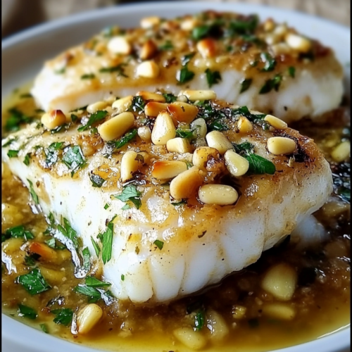 Cabillaud au Citron et à l’Ail Rôti avec Pignons & Persil